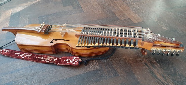 | NYCKELHARPA plus strijkstok te koop In 2006 in opdracht gebouwd door Nicolaj Marks, met versieringen, diverse soorten hout en bladgoud op de toetsen. Goudkleurige snaren, een mooi geheel. In zeer goede staat. Vraagprijs € 2.950, inclusief houten koffer. Tel. 06-24552510 E-mail tholsbergen@upcmail.nl |